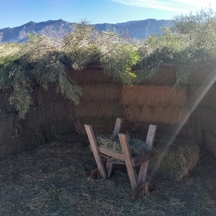 Fall colors on the farm are beautiful! And of course, we are in full on Christmas mode, getting product ready for our farmer's market, and getting ready for our annual Kids' Nativity this weekend! We finished construction today on the stable "set" for the kids' production this weekend; Delie the cat approves. Wasn't able to get the usual palm fronds for the stable roof, so we had to use the best thing we could find, desert broom! Well, if not as authentic, it does look nice. Citrus is ripening up! This week at the farmer's market we'll have lemons, pomegranates,
